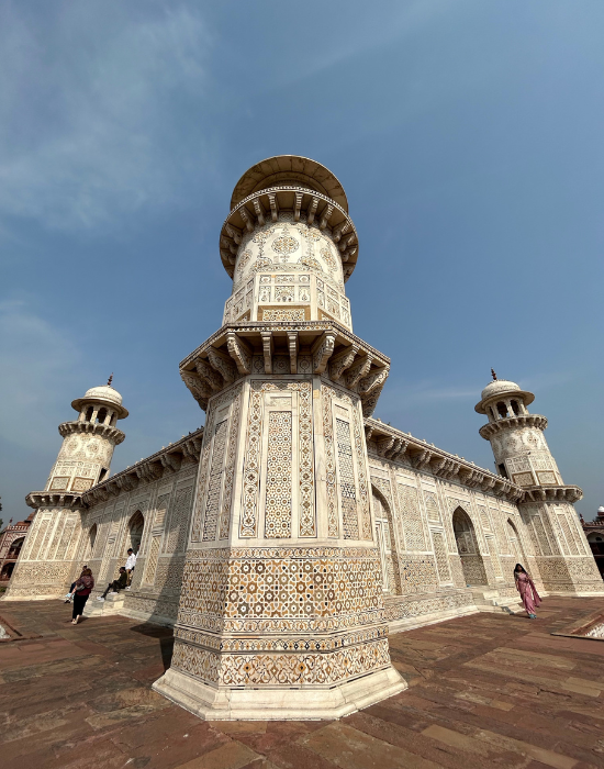 The monument is regarded as a draft of the Taj Mahal because it was the first Mughal structure built entirely in white marble, with delicate inlay work of semi-precious stones that later inspired the Taj. Nestled on the banks of the Yamuna River, this serene tomb is a must-visit for travelers exploring the historical treasures of Agra.