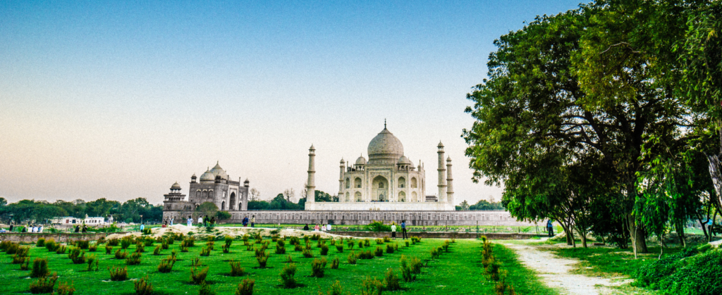 Spanning over 25 acres, Mehtab Bagh is the last of the eleven Mughal gardens built along the Yamuna River in Agra. Perfectly aligned with the Taj Mahal, it is often described as the monument’s “photographer’s paradise”.